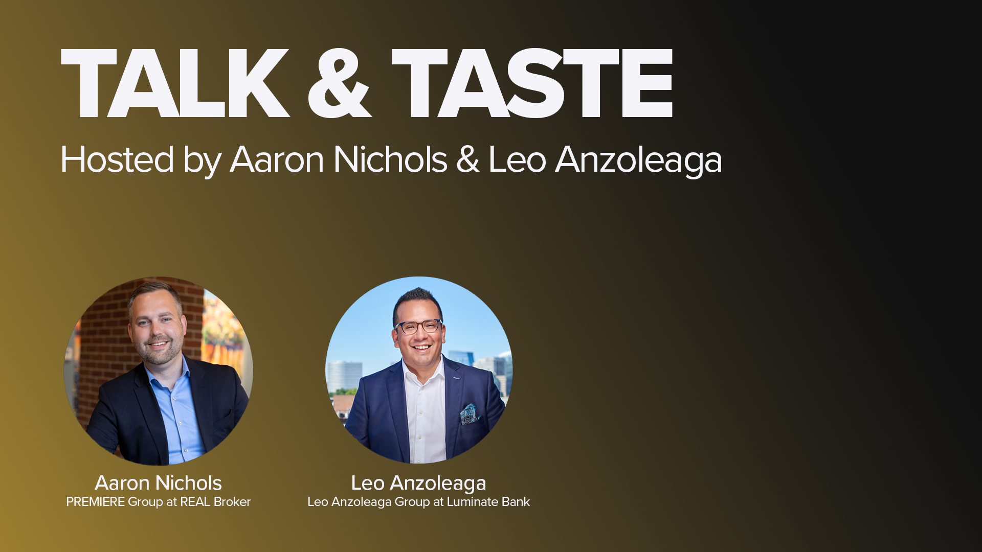 Join us for a free virtual wine tasting and real estate Q&A session hosted by Aaron Nichols of PREMIERE Group at REAL Broker & Leo Anzoleaga of Luminate Bank.